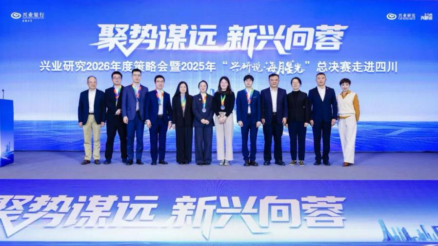 近日,兴业银行成都分行联合兴业研究在蓉成功主办2026年度策略会暨2025年“兴研说·每月星光”总决赛。本次活动旨在深度践行“专家办行”,立足金融、服务大局、赋能实体,为金融强国和中国式现代化建设贡献更大力量。兴业银行成都分行党委书记胡斌,兴业研究党委书记、院长刘健,兴业银行首席经济学家、兴业研究学术评审委员会主席鲁政委出席会议。兴业银行成都分行、兴业研究主要负责人、500余名金融机构及企业客户代表参加会议。