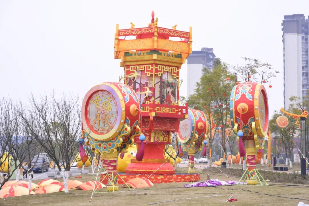 施工中的国潮灯组(丹棱县融媒体中心供图)