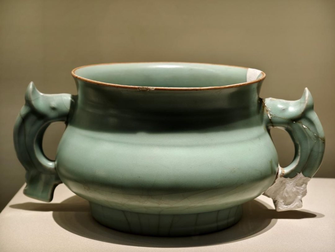 龙泉窑青釉龙耳簋式瓷炉 南宋 遂宁市博物馆藏(央广网发 四川博物院供图)