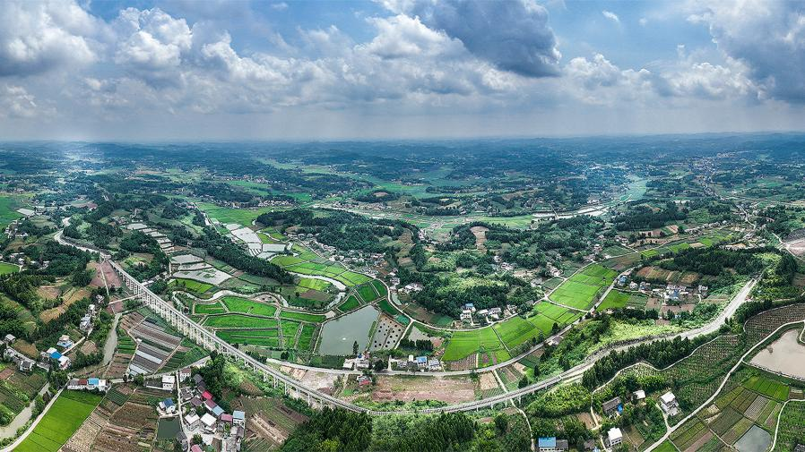 毗河供水一期工程宝林段鸟瞰图(乐至县委宣传部供图)