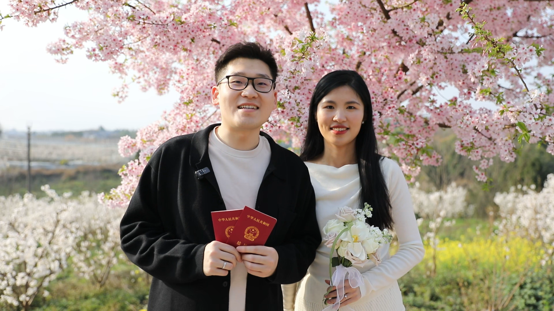 在这片浪漫的花海中,一对年轻夫妻的身影格外引人注目。刚刚在民政局完成登记手续的何长乐,小心翼翼地握着还带着体温的结婚证,与妻子在樱花树下甜蜜依偎,将人生中最重要的时刻与这片唯美花海融为一体。“我们今天领证,朋友们都推荐我们来这儿,说很有意义。”何长乐的脸上洋溢着幸福的笑容,“到了现场才发现,这里比推荐的还要美。成片成片的樱花树下,怎么拍都好看。”