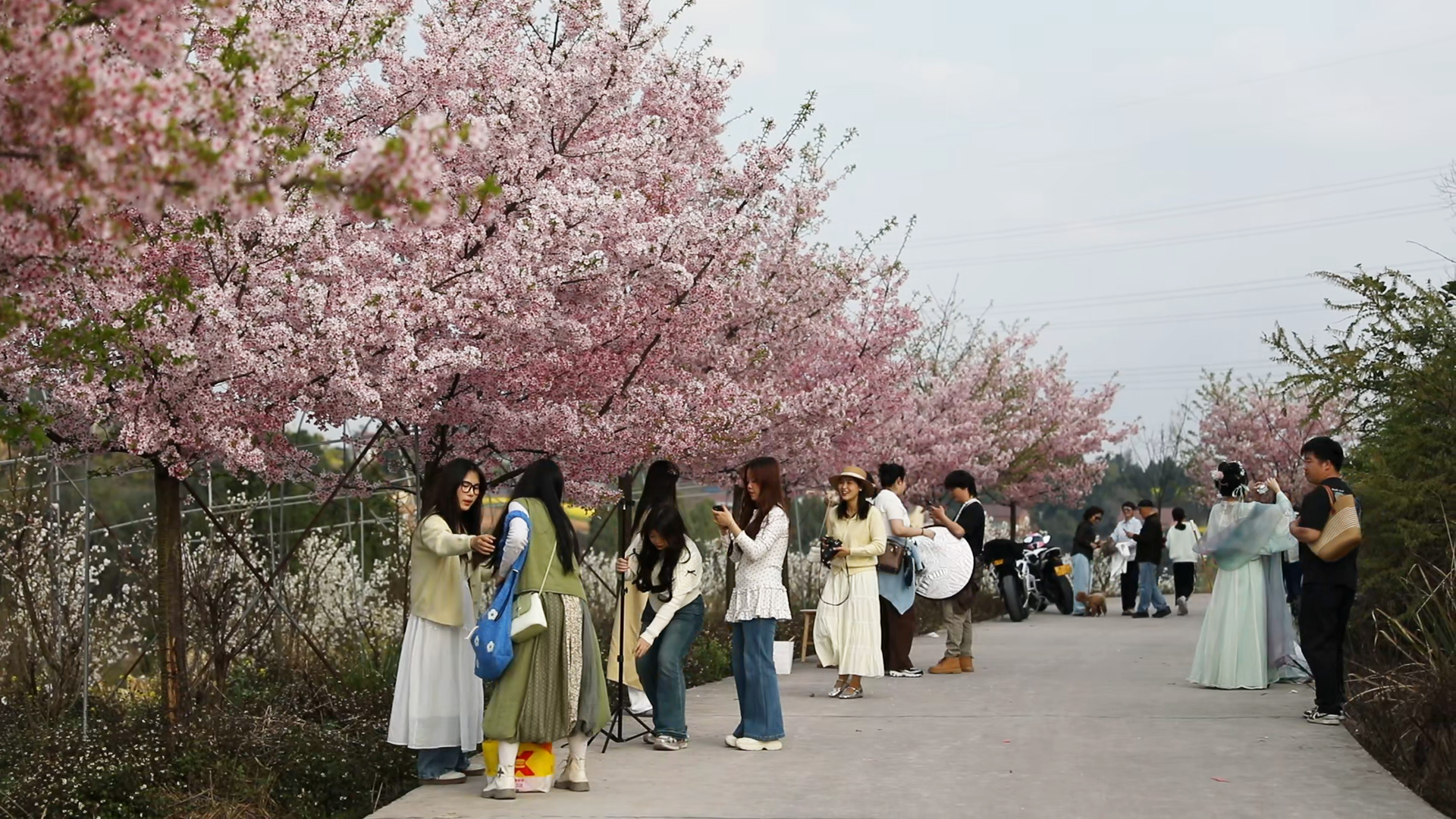 “以花为媒,以果会友”。近年来,花洞村依托其得天独厚的自然资源,不再满足于传统的农耕模式,而是深入推进“一村一品”建设,巧妙地将生态优势转化为发展优势。通过精心打造休闲观光、田园采摘等一系列沉浸式体验项目,一条清晰的“以旅促农、以旅带农、以旅富农”的发展路径已然成型。这烂漫的樱花,不仅扮靓了乡村的春天,更悄然铺就了一条通往产业兴旺、生态宜居、生活富裕的乡村振兴“致富路”。(来源:内江市融媒体中心)