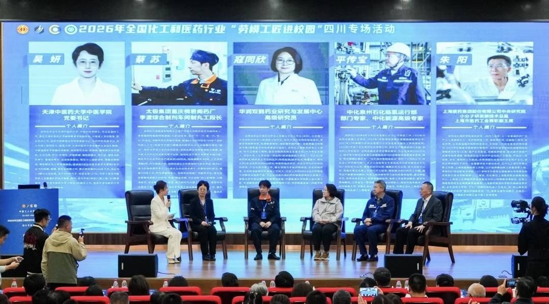 4月1日,2026年全国化工和医药行业“劳模工匠进校园”四川自贡专场活动走进四川轻化工大学宣讲现场,四位来自全国各地的劳模工匠依次登台,用朴实的语言、真挚的情感,分享了各自扎根岗位、砥砺前行的奋斗故事。