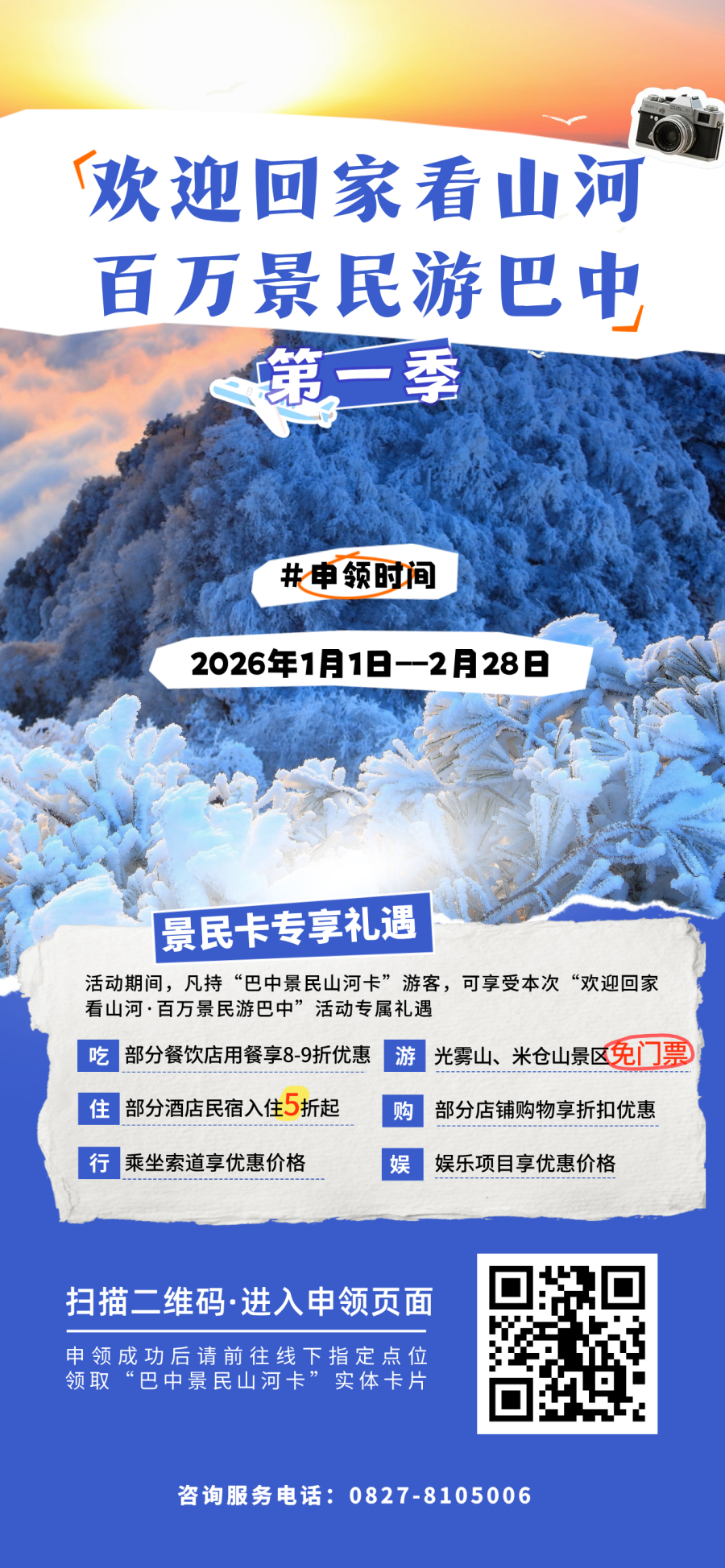 持“巴中景民山河卡”的人可在活动期间享受覆盖全市的专享礼遇,实现“一卡惠游巴中”。