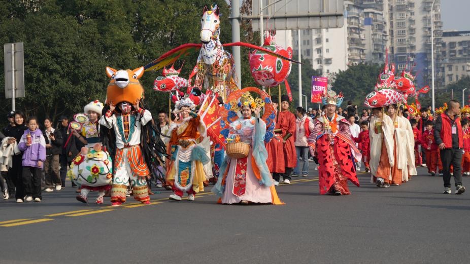 此次巡游活动荟萃了《马踏祥瑞》非遗表演、《顶花坛》功夫马戏等传统民俗精粹,以及《智械狂潮》智能机器人舞蹈、《舞动青春》街舞等现代潮流表演。巡游节目既有《汉服舞蹈快闪》的典雅风韵与《四大名著》经典桥段的文学回响,又有《球绽未来》篮球秀、《轮舞迎新年》轮滑表演的青春活力,还有《奇趣玩偶大派对》《迎财接福》带来的趣味互动。
