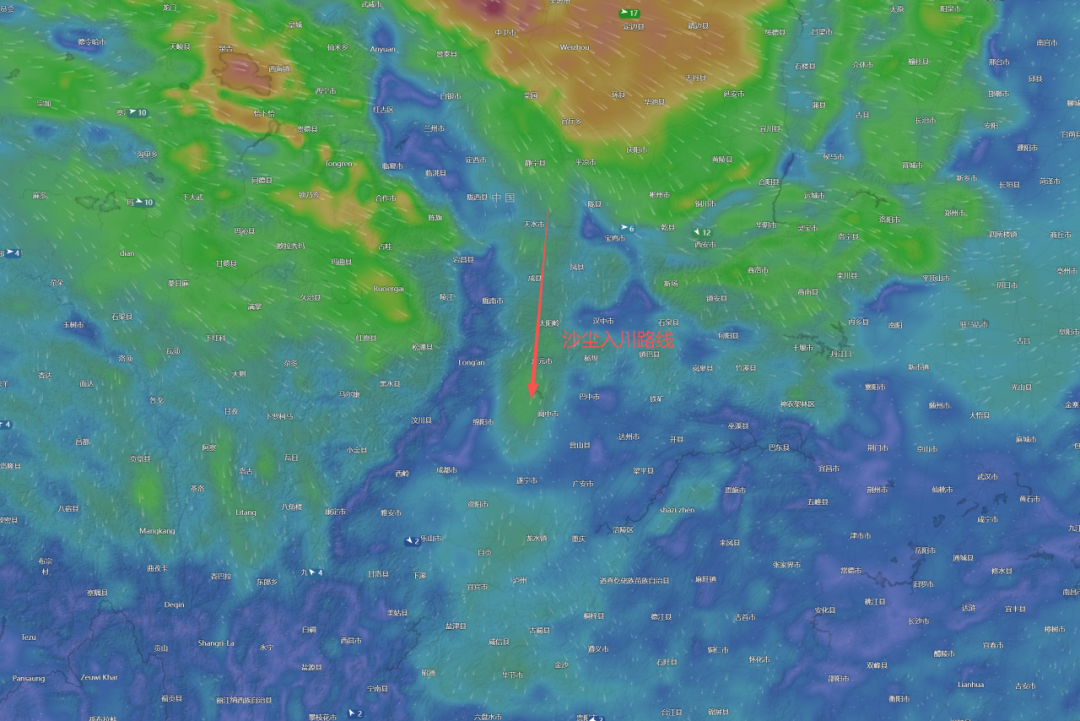 沙尘入川路线(央广网发 四川省生态环境监测总站供图)