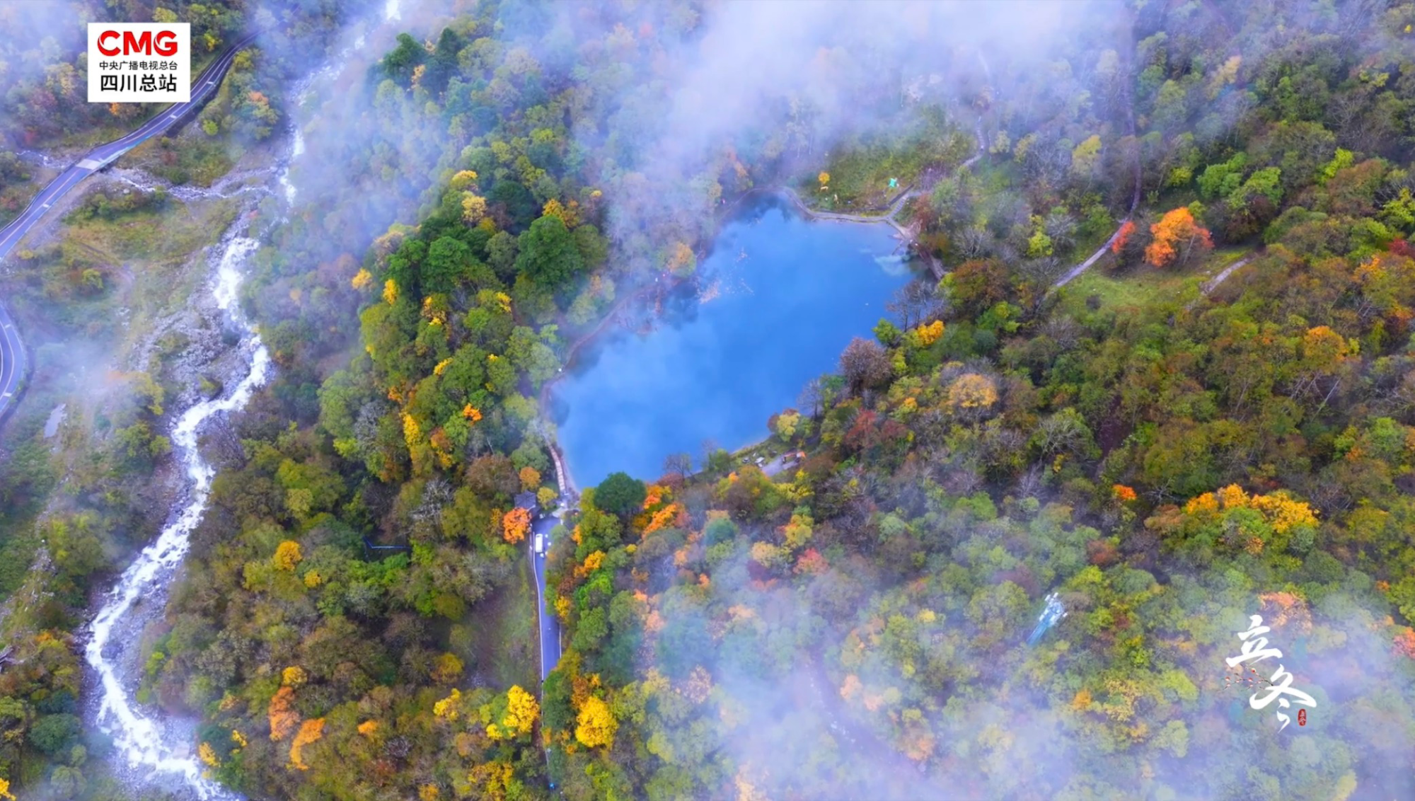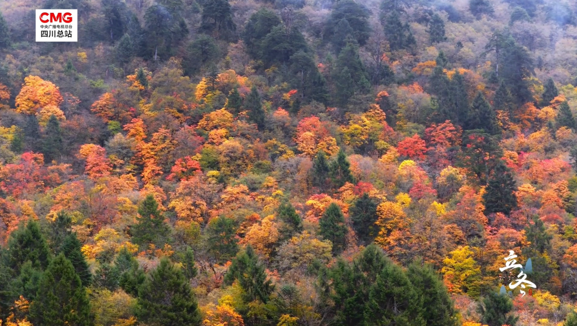 立冬时节,彩林未尽的秋意仍在山谷间流转,而冬的银装已悄然覆盖高峰与山脊。